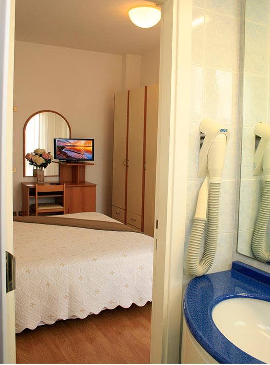 Le 34 camere dell'hotel, sono tutte accessoriate con aria condizionata, frigorifero, cassaforte, servizio privato con doccia o vasca, phon e Tv. Ogni camera è dotata di balconcino.